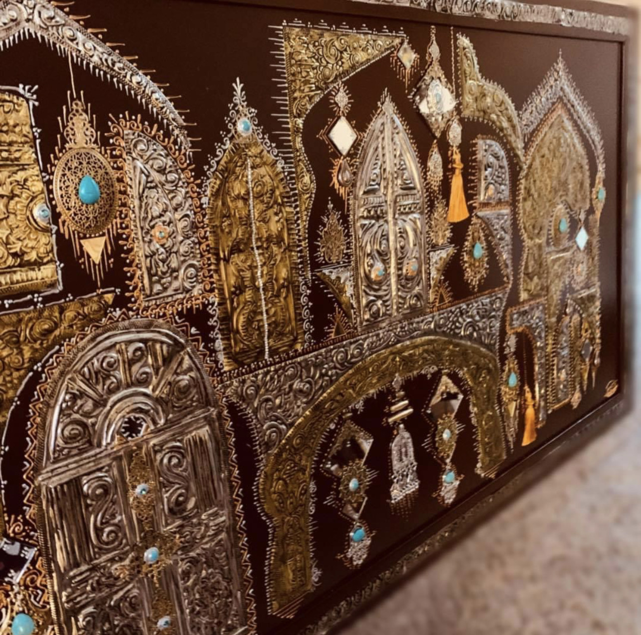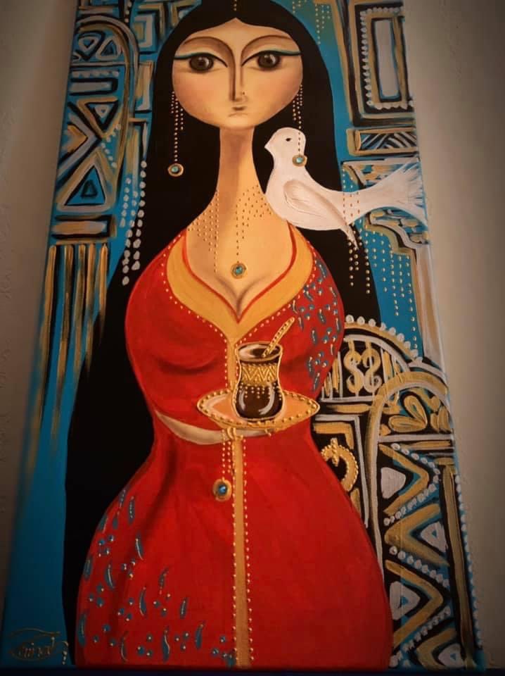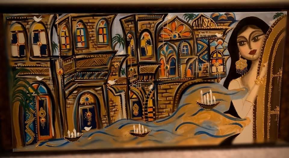 Traditional Fatima’s hand. Acrylic colors over canvas. The measurments 12*24 inches
